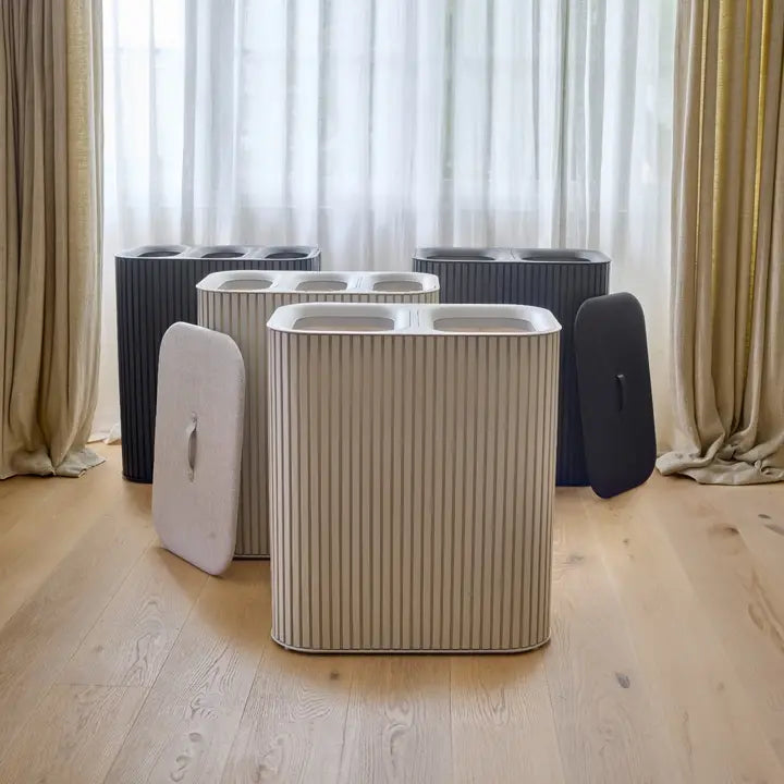 Chegou o cesto de roupa suja que une design sofisticado e organização inteligente.